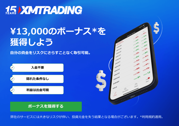 入金不要、口座開設ボーナス(取引ボーナス)だけでXMのトレードを体験することができます。